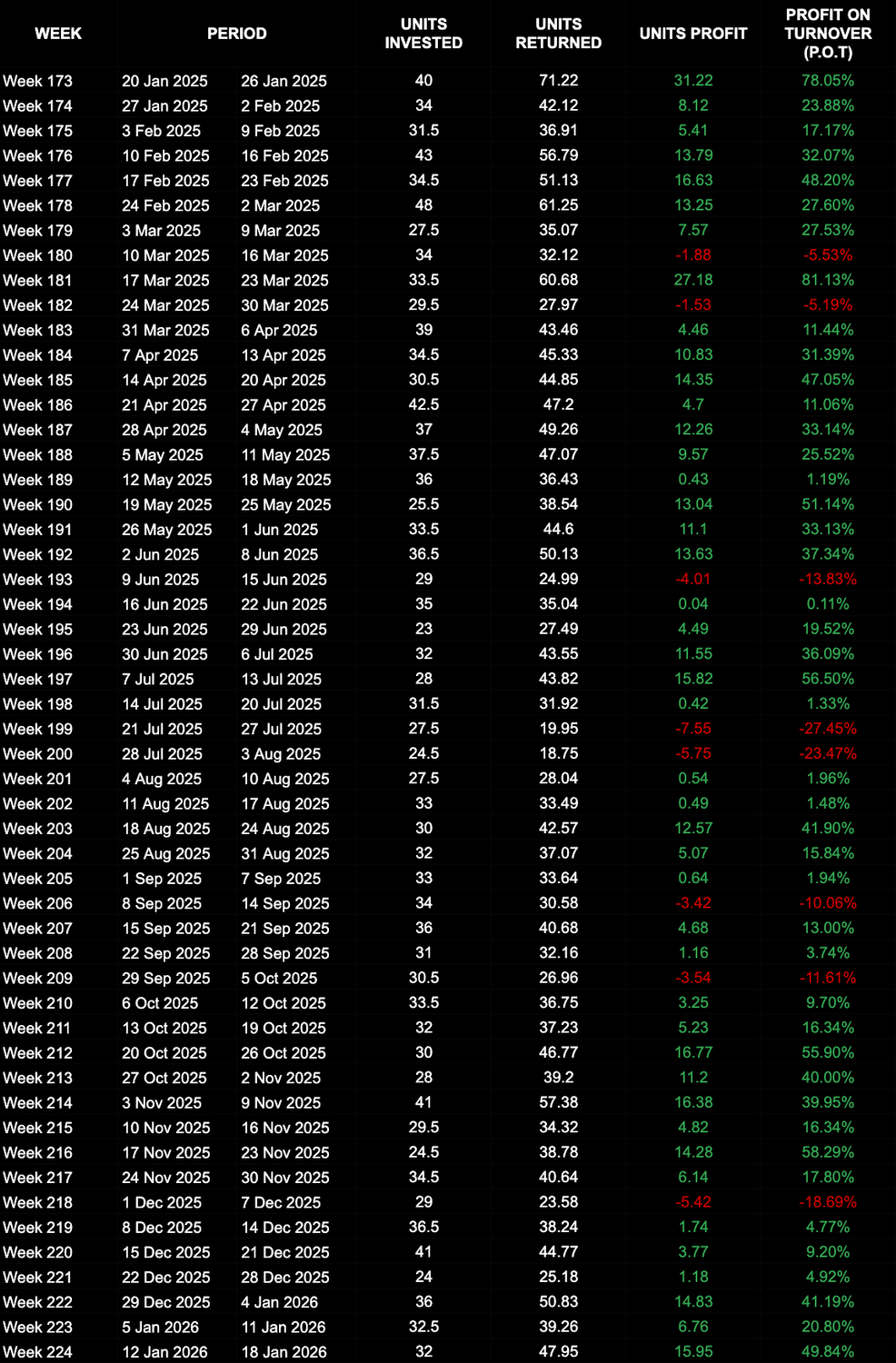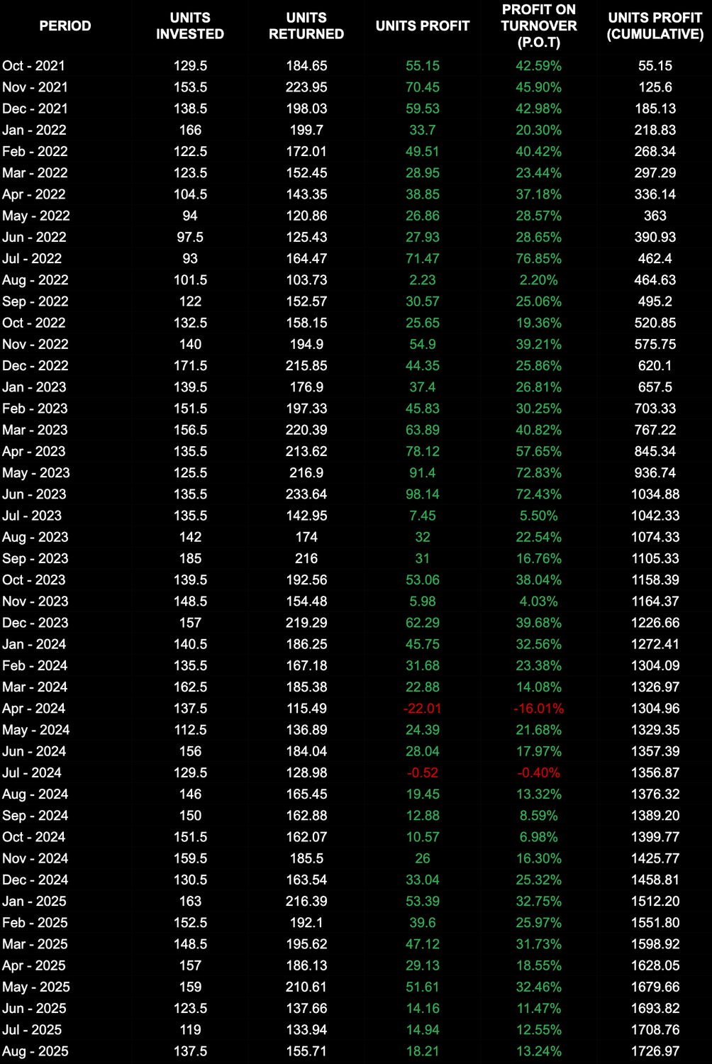 We are committed to transparent results so on this page you can explore our in-depth results, detailed summaries and a complete record of every bet that's been sent to members over the past 2 years!
